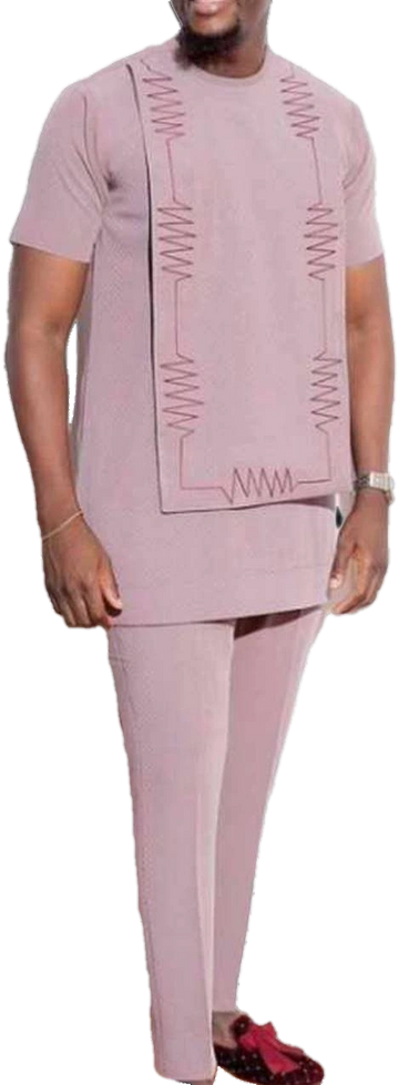Stylish Nigerian Rose colored Short Sleeve Senator outfit